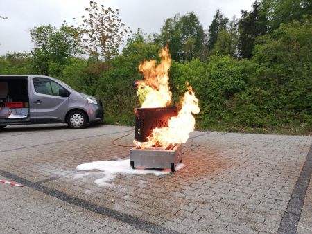 - Löschen eines Papierkorbbrandes-praktisches Löschtraining